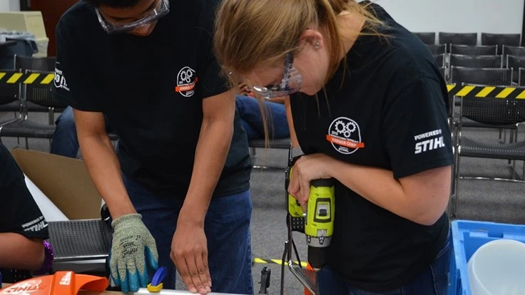 During the four-day camp, students learned to build LED desk and dome lamps out of STIHL components. Participants worked in small teams to develop technical, production and budgeting skills to find the most efficient way to construct prototypes. Through this challenge, students completed every step of bringing a product to market from time studies and building electronics to marketing products to the judges.