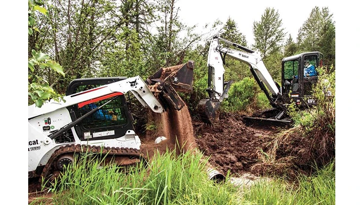 In only four days, the Stevenses’ property was transformed with the help of Bobcat machines and attachments, a team of operators from Bobcat Company, and Rick and Julie Kreuter. Three compact track loaders – including a T595 skid-steer loader, a compact excavator, an MT85 track loader, four utility vehicles and a telescopic tool carrier, as well as 25 different attachments, were operated to create a 43,000-square-foot pond, establish a mile-and-a-half of access trails, install an erosion control fence, create conservation plots and construct a fire pit for Glenn and Judy to enjoy. The conservation plot and pond portions of the project will provide another food and water source for wildlife, including moose, black bears, deer, foxes, lynx, hares and bobcats.