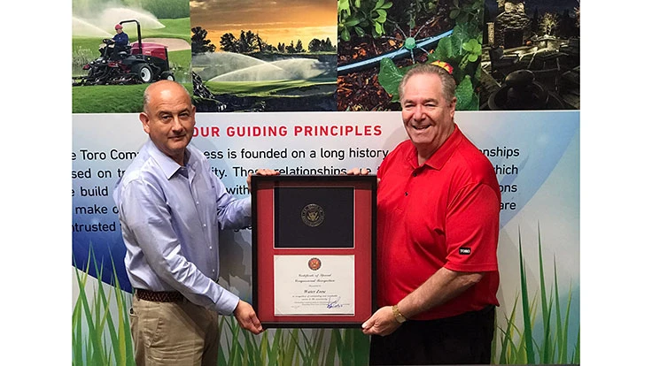 RIVERSIDE, Calif. – The Water Zone radio show, sponsored by The Toro Company, has been presented with a special Congressional Recognition Certificate for “Outstanding Communications & Educational Outreach Regarding Water Issues & Policies.” The certificate was sponsored by U.S. Congressman Ken Calvert from California’s 42nd District.