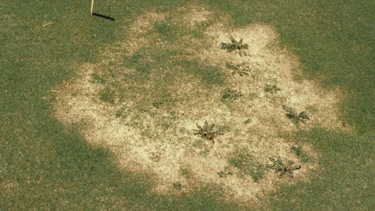 Pictured above: Take all patch is a root-infecting fungus that thrives in wet, cool soil.