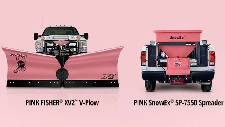 In addition, attendees of the 2015 GIE+EXPO, Oct. 22-23 in Louisville, Ky., can purchase raffle tickets for a chance to win a limited edition pink FISHER XV2 V-plow or pink SnowEx V-Maxx SP-7550 spreader.