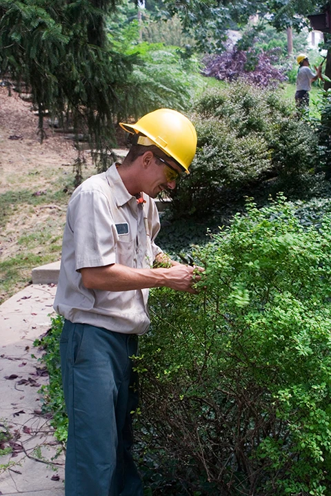 IPM involves a series of educated evaluations that include setting thresholds, identifying and monitoring pest activity, employing preventive measures and controlling unmanageable pest outbreaks on turf, trees and ornamentals. IPM also requires a strict adherence to sound landscape principles, including using sharp blades when mowing turf, trimming branches with quality pruning sheers, integrating native plants into landscape designs, and properly watering and aerating turfgrass to stay ahead of opportunistic organisms. “We look to make the plant strong and healthy through practices such as proper mulching, pruning and maintaining nutrient levels,” Frank says. “By making a plant strong we do very little spraying. However, sometimes we do need a more aggressive approach.”