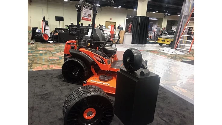 Gravely, Ferris, Kubota and Grasshopper operators of ZTR mowers using 24-inch, 5-4.5 inch bolt-pattern rear tire/wheels will be able to buy the Michelin X Tweel for their commercial mowers in limited quantities by the end of 2018. Available as an aftermarket product through Sunbelt Outdoor Products and ANI Products, the 24-inch, 5-4.5 inch bolt-pattern black hub version will fit: