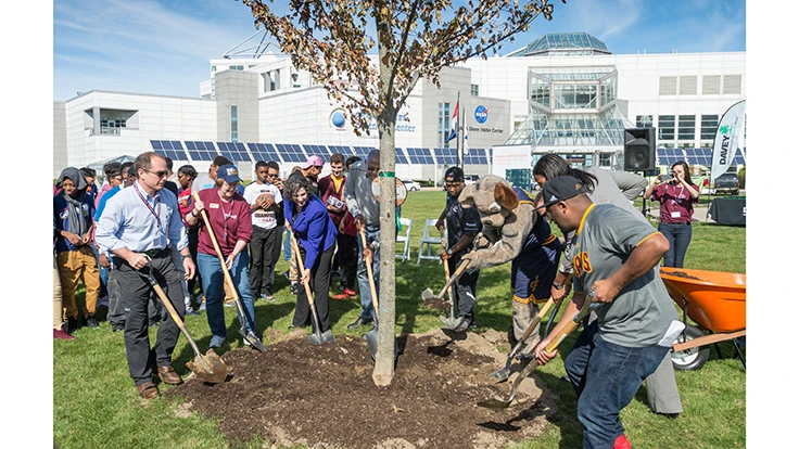 A total 433 trees will be planted or donated – providing a total $1.5 million in benefits over the next 40 years. Volunteers from all three organizations planted trees in downtown Cleveland Wednesday, Oct. 19, in greenspace surrounding the Great Lakes Science Center and the Rock and Roll Hall of Fame.