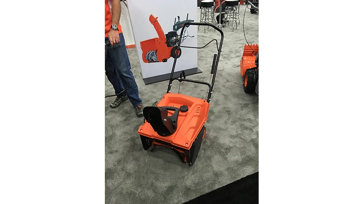One of their new products for the professional contractor line is the single-stage snow thrower, which was created for the small to medium contractor. At 18 inches wide, it can clear snow up to 11 inches deep. The chute can rotate 180 degrees via an on-chute handle, allowing contractors to easily change the direction the snow is shooting.