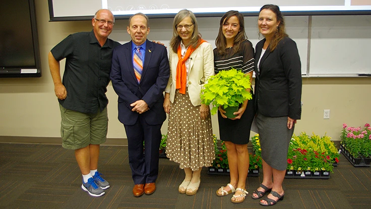 For the ceremony on Oct. 22, Clark, a professor in the Department of Environmental Horticulture, brought Anna Ball, a third generation owner of Ball Horticultural Company, as a special guest lecturer. Ball, based in West Chicago, Illinois, is one of three companies that licenses Clark’s UF coleus varieties. Ball has sold more UF coleuses than any other company, Clark said.