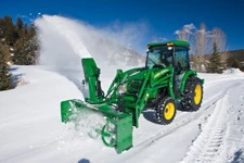 • The hydraulically driven and loader-mounted SB2176 Snow Blower is compatible with all John Deere 400 Series Loaders.