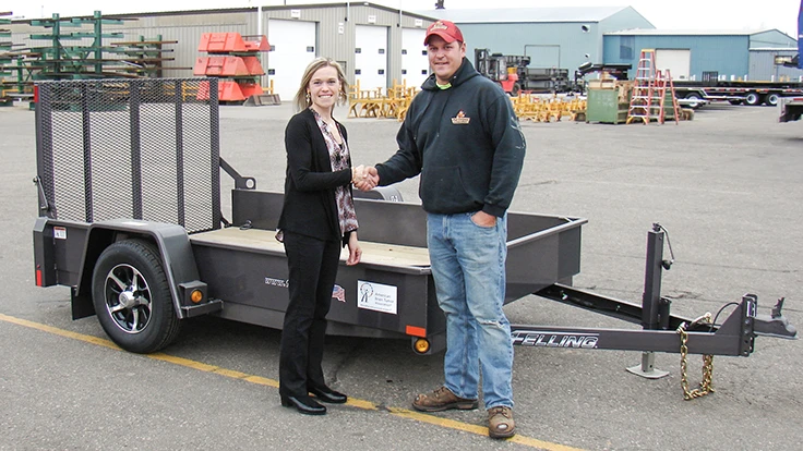 Pictured above is the winning bidder of Felling Trailers’ FT-3 drop deck trailer, Patrick Stepan, and Brenda Jennissen, Felling Trailers’ president/CEO.