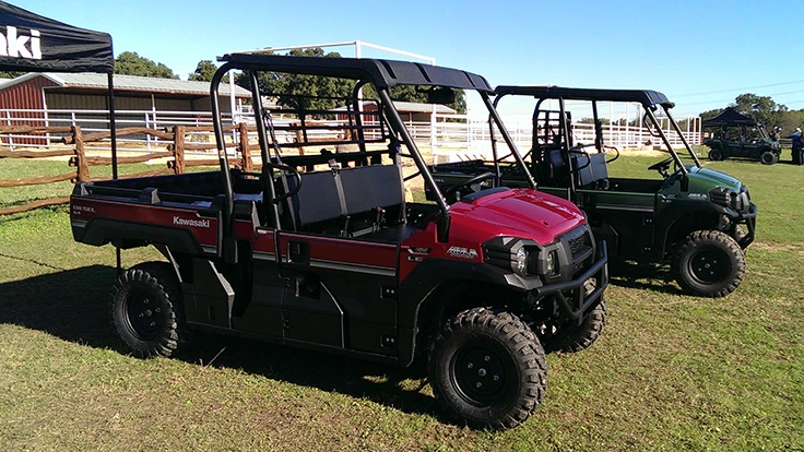 Kawasaki introduced the 2016 MULE PRO-DX and MULE PRO-DXT to select media members at a ride and drive in San Antonio. The new models were not designed to be the fastest vehicles, Mann said. Instead designers focused on making them more suitable for heavy work.