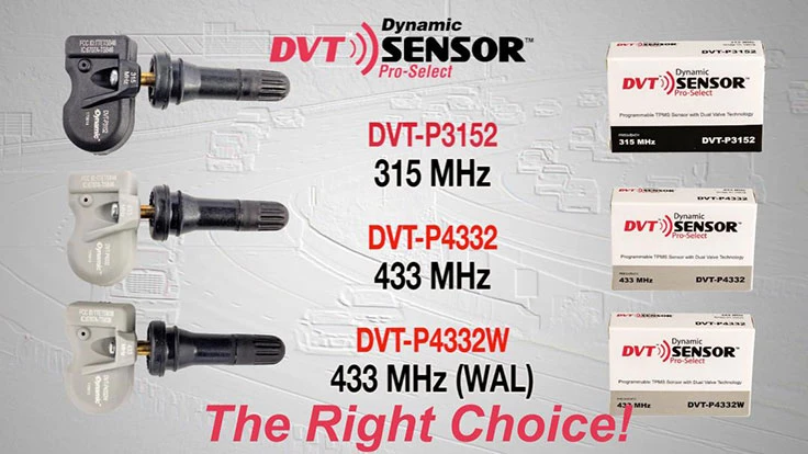 The Pro-Select System includes three part numbers: DVT-P3152, DVT-P4332 and the DVT-P4332W that is specifically designed to work with all late model Wireless Auto Locate (WAL) equipped vehicles. A large portion of the video is dedicated to instruction on how to program the new Dynamic DVT Pro-Select sensors, complete the relearn process and clone an ID to our new sensors. This new TPMS Video Module #7 supplements the recently updated Dynamic TPMS training video library.