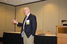 Caption: Tim Maniscalo (pictured above), manager of public affairs, Dow AgroSciences, speaks to attendees about the public’s perception of pesticides at the second Lawn Care Summit in Atlanta Thursday.