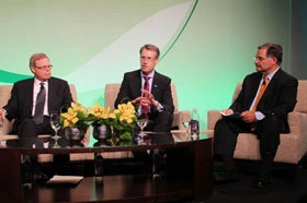 BASF executives Harald Lauke, president, Competence Center for Biological and Effects Systems Research; Markus Heldt, president, crop protection division and Peter Eckes, president, Basf Plant Science Co., updated attendees on BASF's R&D activity and its plans for future growth at a conference in Chicago. L&L: Earlier today we learned about a partnership BASF has with Monsanto to develop new crop systems. Do you look for similar partnerships in the turf markets?