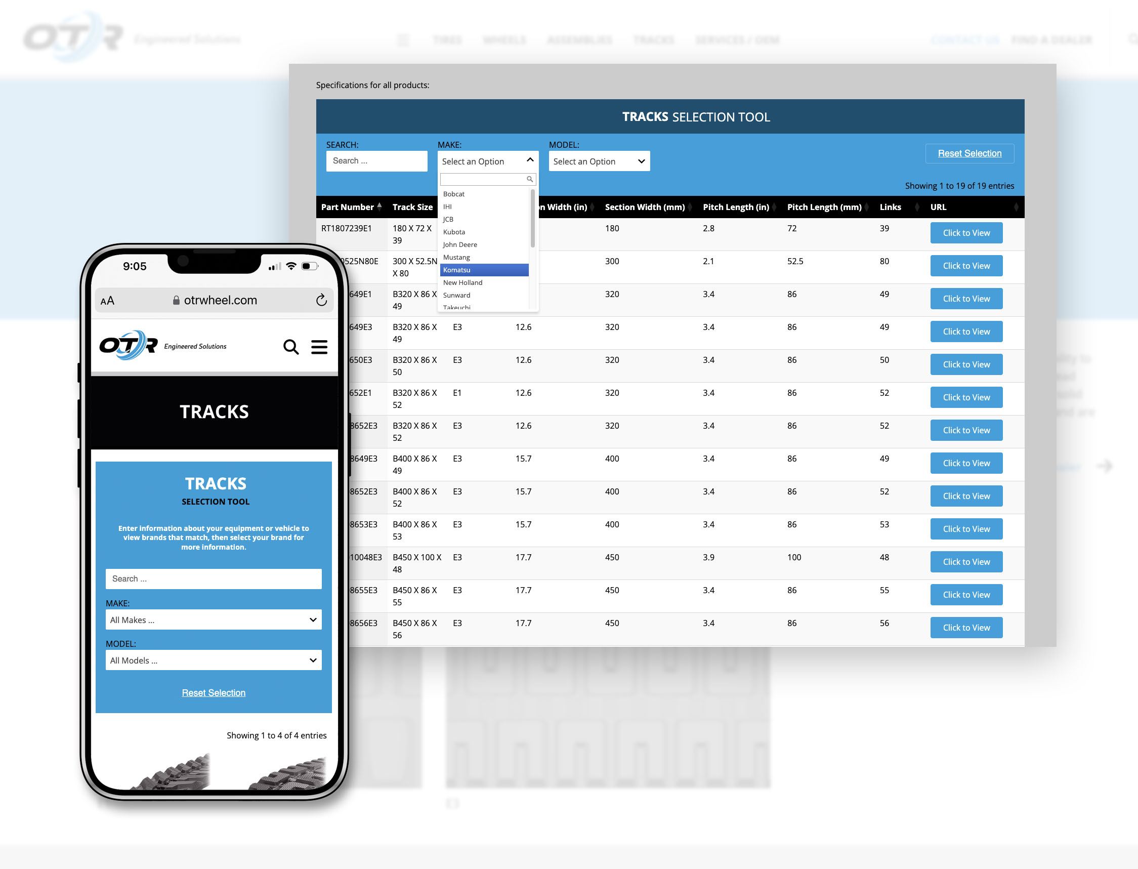OTR Engineered Solutions has recently launched a tracks selection tool and dealer locator for its website.