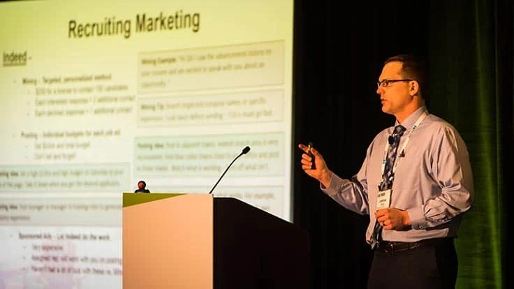 Marketing. “When you’re recruiting, make sure you town down your sales marketing on social media,” Willey says. He recommends posting about company events, photos and employee recognition on social media channels. And, make sure all employees have updated LinkedIn pages with accurate info. “People are looking at this,” he says. At Green Lawn, employees can upload the same cover image to their LinkedIn pages with Green Lawn branding.