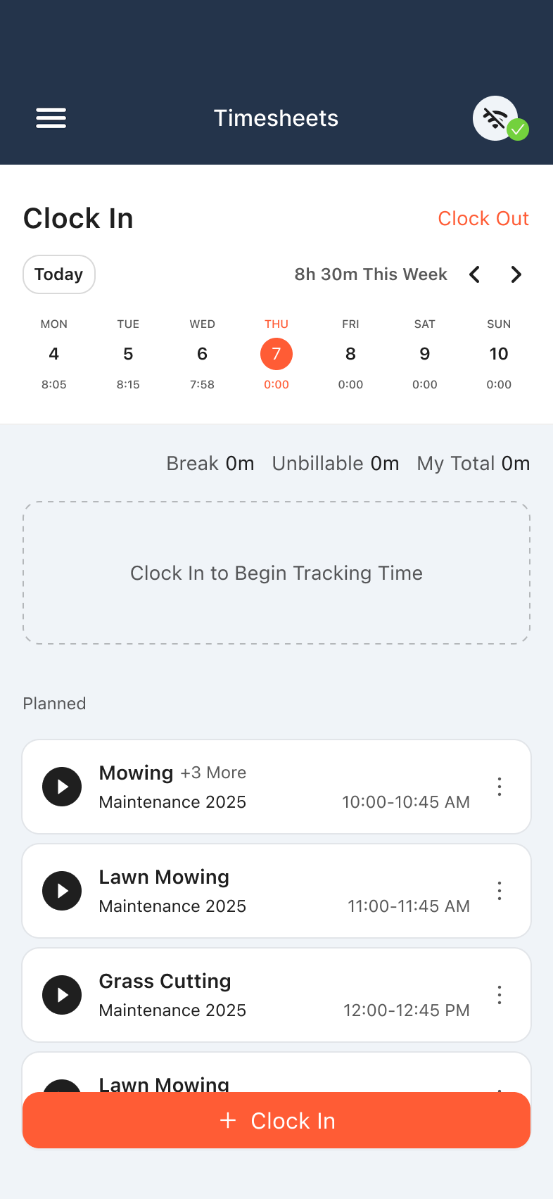 The redesigned time tracking app addresses key challenges faced by crews in the field. Logging hours now has workflows that minimize clicks and simplify time allocation across multiple work areas within a single project. The app also works automatically offline, allowing crews to track their time accurately even when away from Wi-Fi, and is optimized for maintenance crews who visit several properties in a single day.