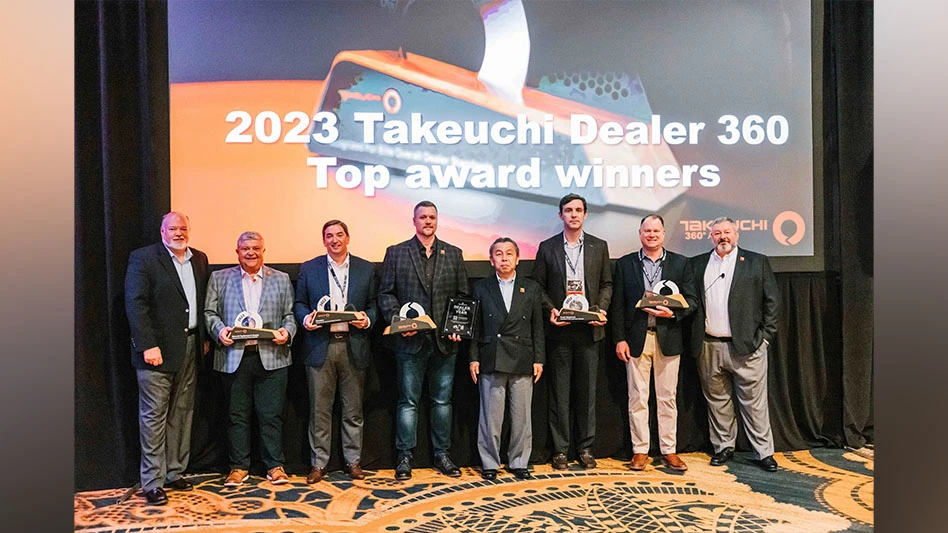Takeuchi recently announced its Dealer of the Year, Dealer Salesperson of the Year and the recipients of its 2023 Dealer 360° awards at the company’s 2024 Dealer Summit in San Antonio. These awards recognize Takeuchi dealers across the U.S. and Canada for excellence in sales performance, facilities, training, accounts receivables, marketing/parts and service.