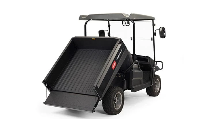 When the vehicle is ready for a charge, there’s a high-efficiency charger on board that’s ready to be connected to any standard power outlet. This model also has the largest cargo capacity of any lithium-ion powered model in its class, so it can handle big jobs.