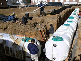 Of the many recent projects worth noting, the LEED Platinum Southface Eco Office project included a 14,000 gallon underground cistern which collects water from nearly the entire site and re-uses it for irrigation and sewage conveyance. The company also completed the LEED Silver Eco Manor in Atlanta, which utilizes rain water for toilet flushing and gray water for sub-surface irrigation. In total, the company has worked on nine LEED projects in the past five years.