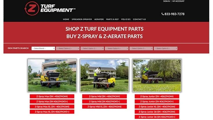 BEATRICE, Neb. — With the launch of its online parts site, Z Turf Equipment makes it easier for customers to purchase parts and accessories for the company’s complete line of professional turf care equipment, including Z-Spray, Z-Aerate and Z-Seed machines.