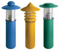 Vertical cylindrical light head with various decorative top shade and louver designs