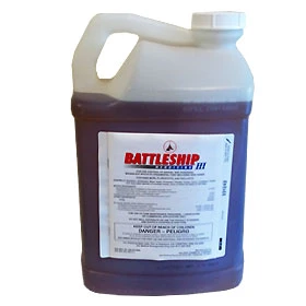 BATTLESHIP III HERBICIDE controls annual and perennial broadleaf weeds in ornamental turf and sod farms.