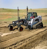 The combination of a heavy-duty grader on an approved loader will move as much material as a small, dedicated dozer, the company says. When used with the Bobcat laser-control system, grader attachments on loaders will grade material to within plus or minus 0.25 inch of the desired grade.