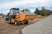 Versatile with a wide selection of buckets and attachments such as pallet fork, tree spade, snow blade, auger, scrap grapple, baler, broom and box blade
