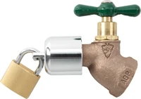 Prevents unauthorized use of hose bibs, preventing water theft and waste Connects to any standard hose-threaded faucet Locks in place with a padlock Made of solid brass Features a free-spinning chrome cover that prevents it from being removed