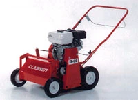 Versatile, compact 20-inch turf dethatcher with folding handle for easy transportation