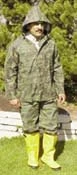 Camouflage value rain suit provides a low-key appearance for grounds crews