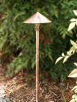 Hand spun from heavy gauge copper, individually crafted with super clean lines Underside coated white for superior reflection For use with: Bi-Pin 10-, 20- or 35-watt bulbs Solid copper stem with super stake and connector included Lifetime warranty