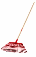The Fixed Tine Rake from Corona Clipper features a 54 inch wooden handle, 25 extra-wide tines, double crimps that hold tines in place and is made of tempered spring steel for greater durability and a longer service life. The bi-curved bow gives even pressure to all tines for maximum raking efficiency while tines apply light pressure for debris removal without damaging plant feeder roots.