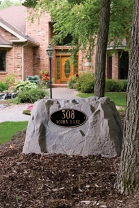 - Accepts custom engraved address plaques in oval or rectangular shapes