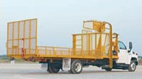Platform at front of truck body has aluminum ramps and can be desiged to fit one or two mowers