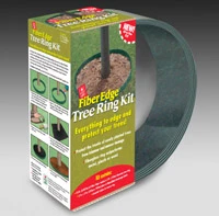 Kit contains ten-foot strip of Fiber Edge flexible fiberglass landscape edging and four Fiber Edge metal anchor stakes to create a three-foot diameter ring around trees and shrubs