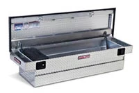 The E-Line Saddle Box Model 143 is secure, durable and convenient to use. It is protected against break-ins with a secure locking system and a tamper-resistant, full-length, piano-style hinge. The 143 also features “Easy Find” organization with a removable tool box and lift-out tote tray. The saddle box’s sturdy, heavy-duty construction features a reinforced aluminum diamond-plate body with an automotive-grade, baked-on powder-coat finish for years of attractive appearance.