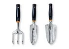 Patented flat end of the handle allows the user to push the tool into the soil without damaging the delicate palm area of the hand