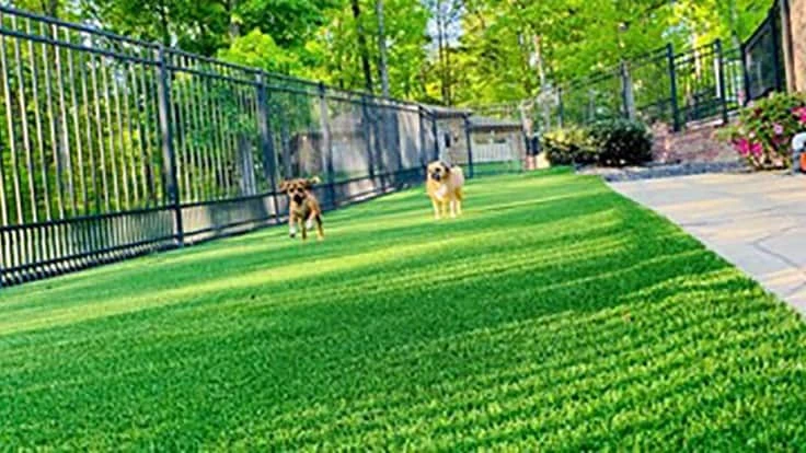 Grass!365 synthetic sod is manufactured in Dalton, Georgia, the carpet capital of the world, and features revolutionary SealTuft backing, which features sealed tufts for superior strength along with offering open drain channels that shed water faster. It differs from the urethane, 40+ year-old technology in which tufts aren't sealed together and has to be hole punched to drain, resulting in harder to clean and lesser quality drainage capability. Pet owners will love that their furry friends can pee and poop on artificial grass just like they would natural grass, as it drains perfectly and after removing the poop, in most cases, only requires a hose down to completely eliminate any other residual mess.