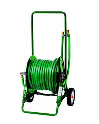 Features a steel handlebar, a one-piece foot and heavy-duty rubber-tired wheels