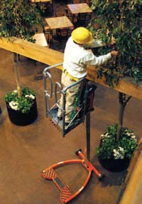 Portable aerial work platform that can reach a 14-foot working height Easy to move and store in a pick-up truck, van or sport-utility vehicle Operated using an 18-volt drill or optional power pack