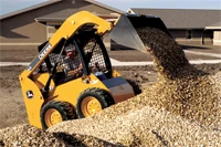 Bucket rests close to the machine when in the down position and swings forward to reach 4 to 5 feet