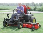 Mower features four fully-articulating 20-inch decks Features Kubota 26-hp diesel engine and Hydro Gear pumps Also includes Parker wheel motors and a Warner magnetic clutch Dual fuel tanks allow hours of wide-area mowing at speeds up to 9 mph Riding mowers