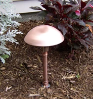 Features a spun copper head and copper pipe Available in multiple heights and verde finish Multiple lamp options Head measures 5 by 4 inches 12 volts