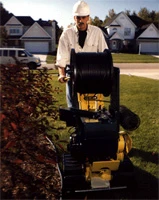 L-2 Line-layer is a one-person operated, self propelled vibrating 'Line-Layer' that will place irrigation pipe to a depth of 4" to 16", depending on the soil conditions, on established lawns or on a rough grade