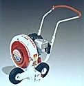 Features three 10-inch diameter steel-hubbed, ball-bearing pneumatic wheels for easy handling - especially over uneven ground