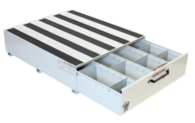 Knaack and WEATHER GUARD Products’ PACK RAT Drawer Units for truck and vans offers access to hundreds of pounds of tools and supplies while leaving floor space open for hauling materials. They are made from 14-gauge steel, and the anti-skid strips on top of the drawer assembly offer traction for wet and muddy boots.