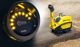 Whereas standard compactors rely on spot-checking with quality control devices to achieve proper material densities, the ECONOMIZER uses an acceleration sensor to measure the stiffness of the target material across the entire compacted area. The data gathered by the sensor is instantly displayed via a simple series of ten yellow LED lights, allowing the operator to react to changing soil conditions.
