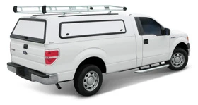 The ToolMaster Series is a rugged truck cap featuring heavy duty doors, two steel toolboxes each with a 120-pound weight capacity, and a commercial-grade Prime Design AluRack roof rack with a ladder rack roller. Side and rear doors with aluminum inserts for privacy and security also come standard on the ToolMaster Series.