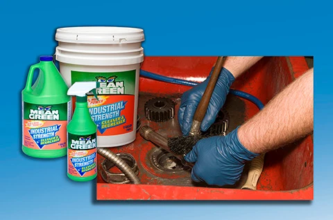 WEST CHESTER, Ohio – With a unique blend of biodegradable detergents, Mean Green Industrial Strength Cleaner & Degreaser quickly cuts through grease and grime, speeding maintenance, repair and rebuild projects. This proven product contains 40 percent more cleaning ingredients to dissolve grease and grime more quickly than other cleaners. With 30 percent more solvents and 20 percent more surfactants, even the most stubborn stains are quickly removed from various industrial surfaces – including metal parts and housings, painted surfaces, vehicle interiors and exteriors, shop interiors including concrete flooring, even fabric, carpet, and more.