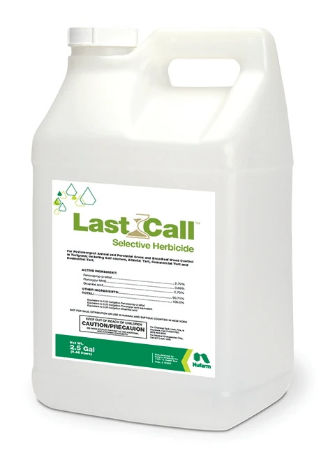 Last Call herbicide is a premium, selective herbicide that is used in cool-season turf weed management. It is a post-emergent product that contains a proprietary formulation of fenoxaprop, fluroxypyr and dicamba.